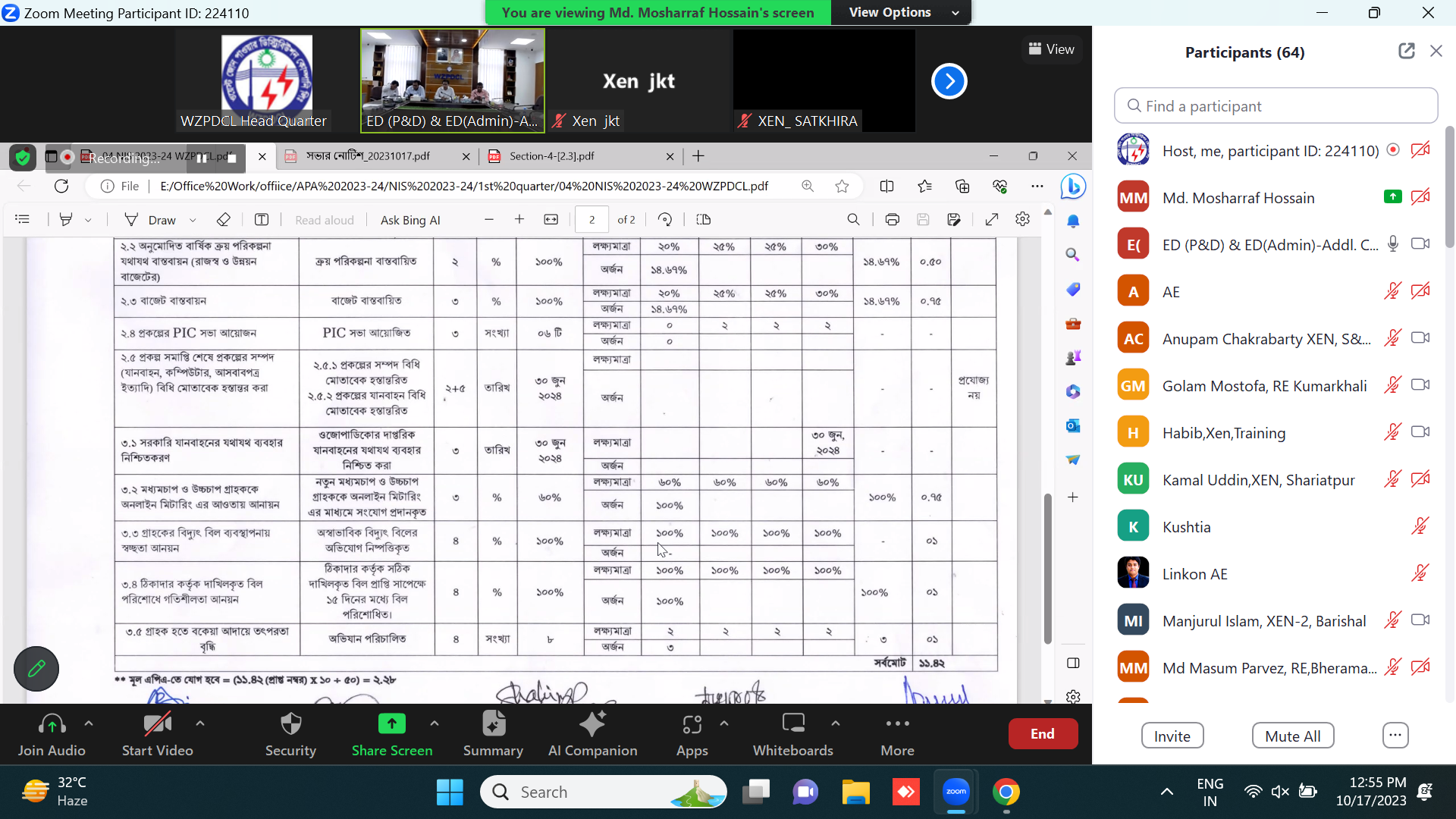 ওয়েস্ট জোন পাওয়ার ডিস্ট্রিবিউশন কোম্পানি লিঃ এর আওতাধীন মাঠ পর্যায়ের কার্যালয় কর্তৃক দাখিলকৃত জাতীয় শুদ্ধাচার কৌশল কর্মপরিকল্পনার ত্রৈমাসিক অগ্রগতি প্রতিবেদনের উপর ফিডব্যাক প্রদান সভা